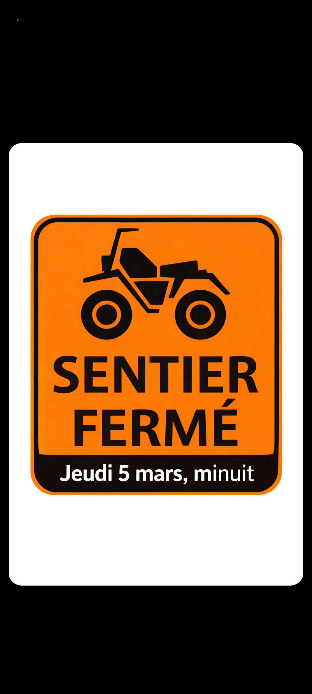 Le Club Quad du Haut Saint François vous annonce la fermeture de vos sentiers ce jeudi 5 Mars 2026 minuit.
